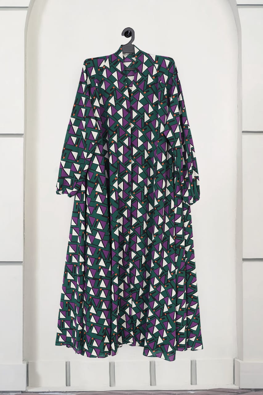 Discover our printed front open abaya, crafted from lightweight georgette fabric for ultimate comfort and elegance. This abaya features stylish elastic sleeves for a perfect fit and effortless chic.