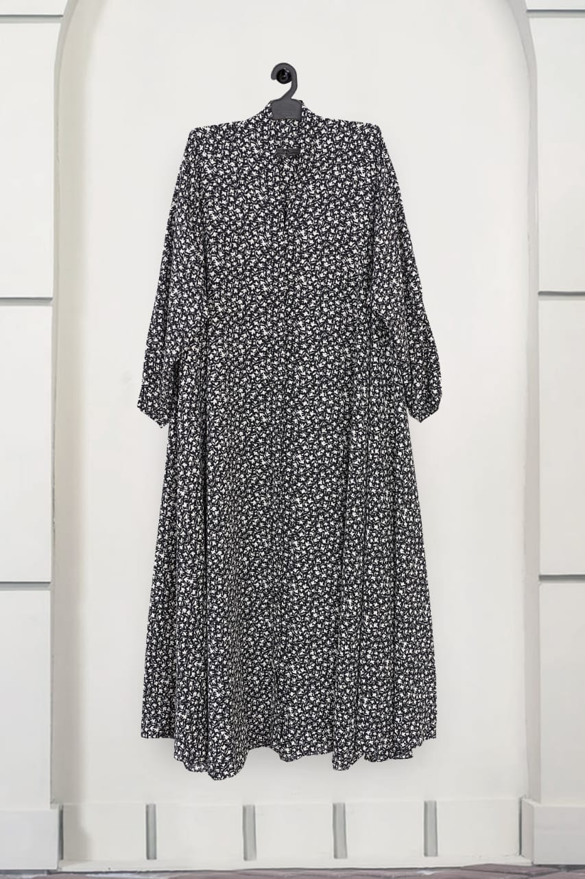 Discover our printed front open abaya, crafted from lightweight georgette fabric for ultimate comfort and elegance. This abaya features stylish elastic sleeves for a perfect fit and effortless chic.