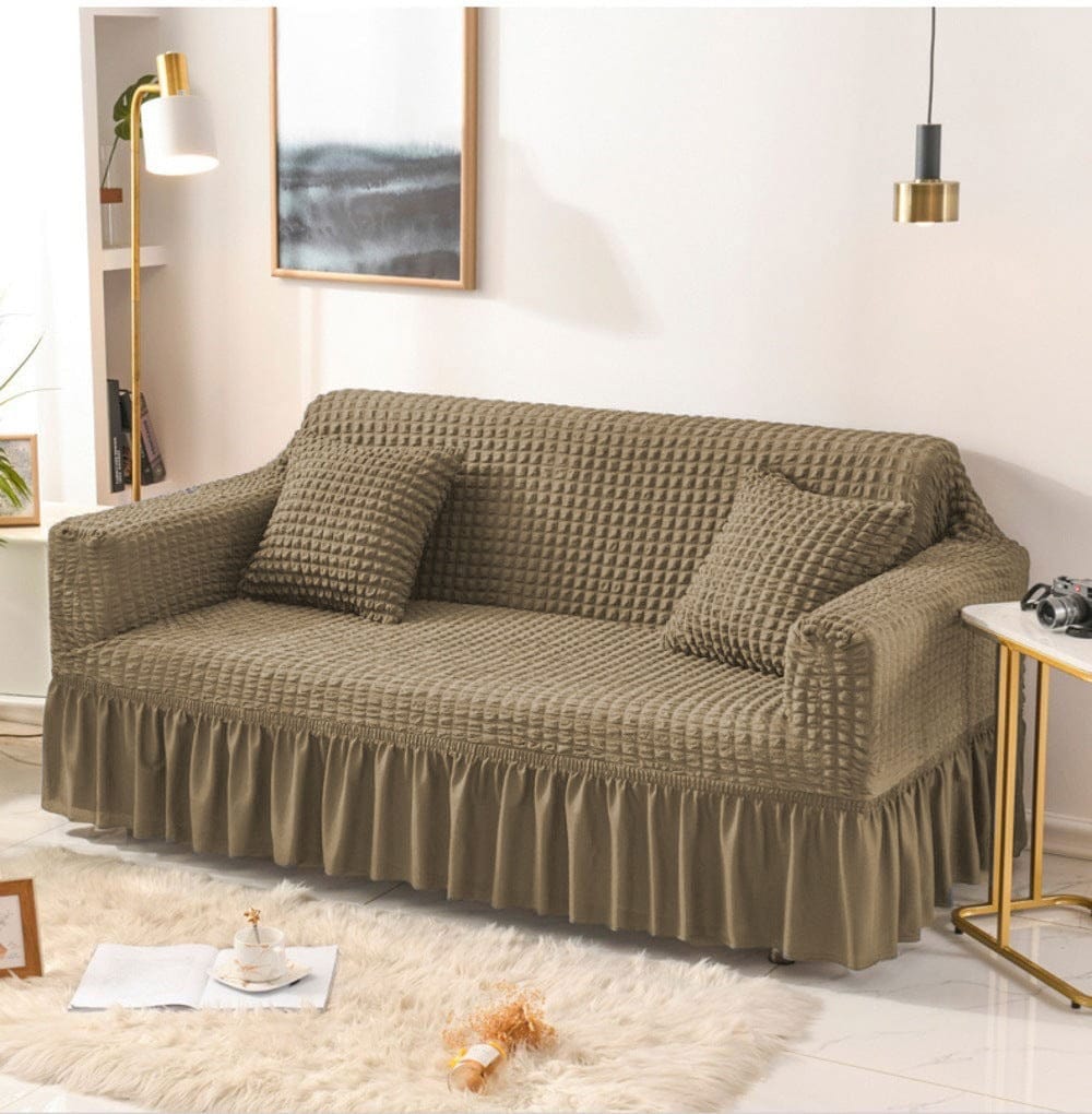 Looking for a quick and easy way to give your sofa a new look? Check out our sofa covers! These covers are in Turkish-Fitted style and feature a frill for added flair. Our selection of Turkish-style sofa covers come in a variety of colors and styles to suit any taste. They're stretchy and washable, making them a great option for busy households. Plus, they're economical and fit all types of sofas.. So why wait? Give your living room a fresh look with our sofa covers TODAY!